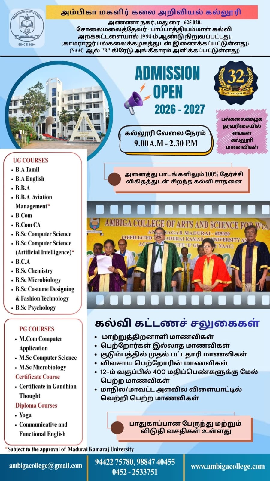 Every candidate for admission should present her Transfer Certificate from the school or college which she last attended. Applications for admission from private candidates will be entertained only if they are accompanied by Eligibility Certificate from the University of MKU.